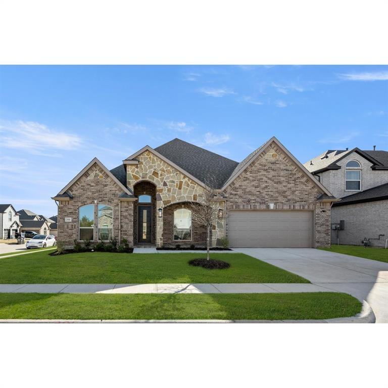 MLS# 20766075 - Built by First Texas Homes - Ready Now! ~ Nestled on a spacious corner lot, this luxurious home combines style and convenience. Enter through the extended front porch with brick-stone elevation into 12' ceilings and a grand study with double doors. The gourmet kitchen, centered around a California island, offers ample cabinetry and a walk-in pantry. The primary suite features a spa-like bath with an oversized shower, garden tub, and walk-in closet. Thoughtful additions include home automation, a powder bath, and a sprinkler system for easy maintenance.