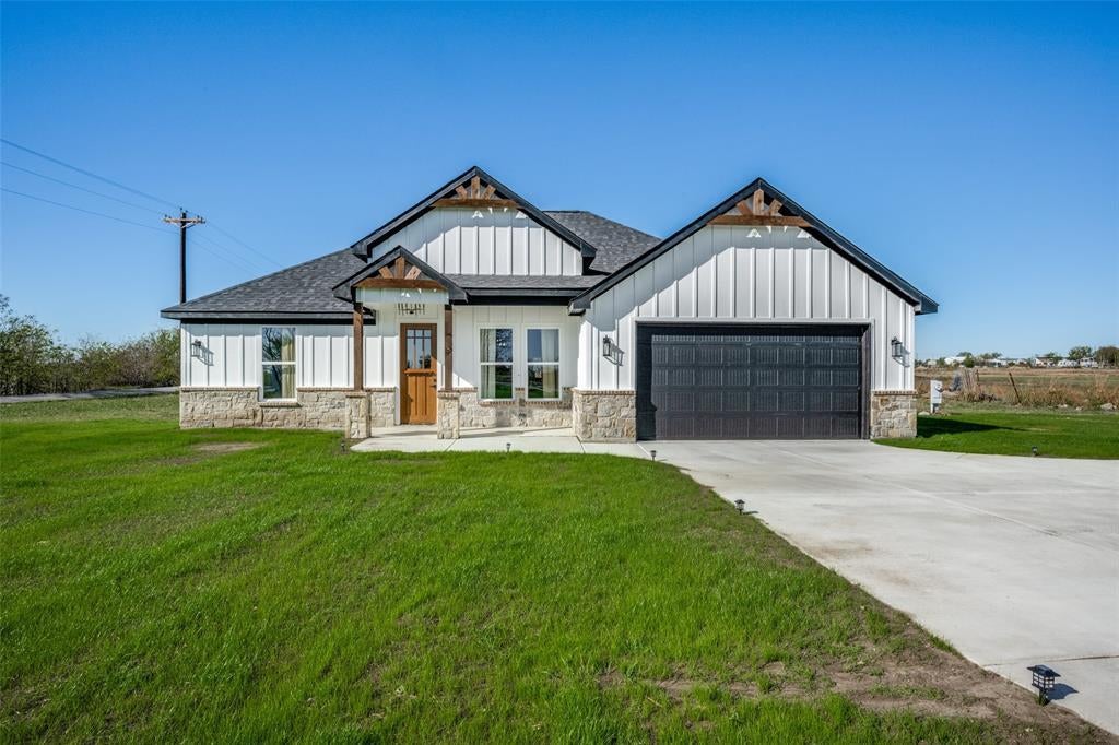 Nestled in the peaceful countryside of Valley View, Texas, this stunning new construction home offers 3 bedrooms, 2 bathrooms, and 1,748 square feet of beautifully designed living space. Combining modern farmhouse style with thoughtful upgrades, this home features an open floor plan, perfect for both everyday living and entertaining. The heart of the home is the expansive kitchen, complete with a large center island, custom cabinets, and high-end finishes. Ceramic tile floors run throughout the entire home, offering both beauty and durability. The master suite is a true retreat, featuring additional safety measures with cinder block-lined walls for added security and peace of mind. A custom walk-in closet offers ample storage, while the master bathroom boasts a spacious layout with a large shower for the ultimate in comfort. This home blends modern style with country tranquility, making it an ideal choice for those seeking a peaceful retreat without sacrificing modern conveniences. Don't miss out on the opportunity to own this one-of-a-kind property!