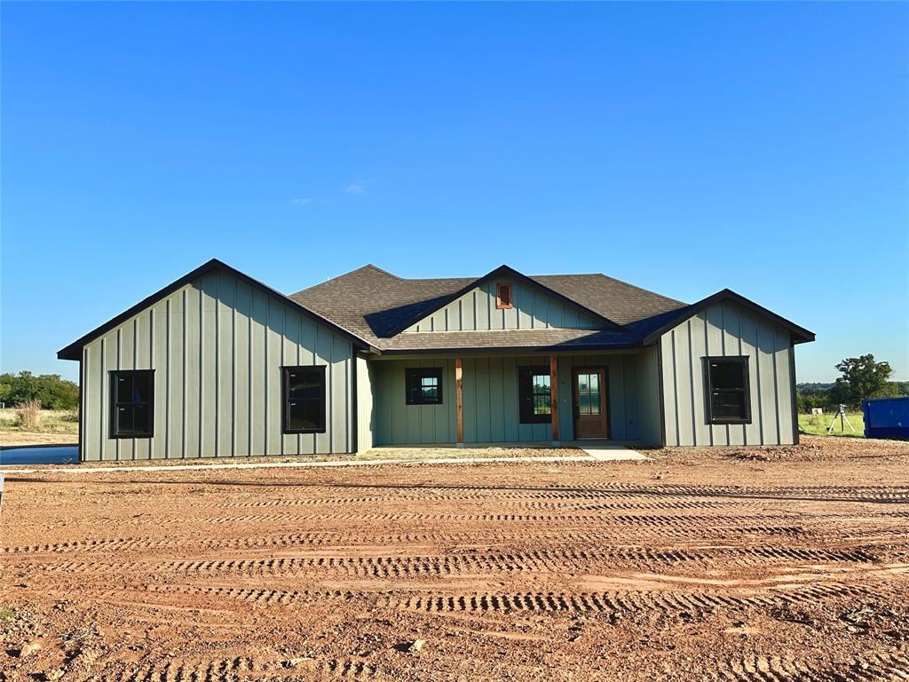 Open House Sat & Sun from 9-5! end October completion! Experience serene country living in this new construction home in Paradise ISD, free from city taxes and HOA fees. This beautifully crafted home showcases a spacious, open-concept design with 3 bedrooms and 2 bathrooms on almost 4 acres! Paint board & batten design supported by solid cedar stained columns. Easy maintenance with water resistant luxury vinyl plank floors in the common areas, carpet in the bedrooms, & accent tile in baths. The Kitchen has an eat-at-island with a pop of color on the shaker style cabinetry with a large kitchen island that seamlessly connects the kitchen to the living and dining areas. Abundant natural light pours through the front to back windows on to a generous sized back porch. The master suite includes double sinks and a walk-in closet conveniently connected to the laundry room. Nestled on 3.83 rural acres, this home offers the ideal escape from city life while still being conveniently close to modern amenities. This Lucas plan is fully equipped with all the features one would expect from a custom home, including split bedrooms, spacious porches, custom cabinetry and closets, Delta faucets, a concrete driveway, decorative mirrors, wall-mounted TV outlets, and hardline Ethernet ports. The builder has invested in high-quality details such as spray foam insulated walls and more. The two-car garage is thoughtfully designed with can lighting, a smart MyQ side-mount garage motor, and an auto-lock system for added security. The expansive back porch is perfect for hosting gatherings or simply enjoying peaceful evenings. NO HOA & NO CITY TAXES! September completion! Home has 3-phase inspected & a comes with 1-2-10 3rd Party Warranty for your peace of mind. Txt keyword ZHBHOME5 to 88000 for full details on this home! Directions & lot map at www.zhb.homes
