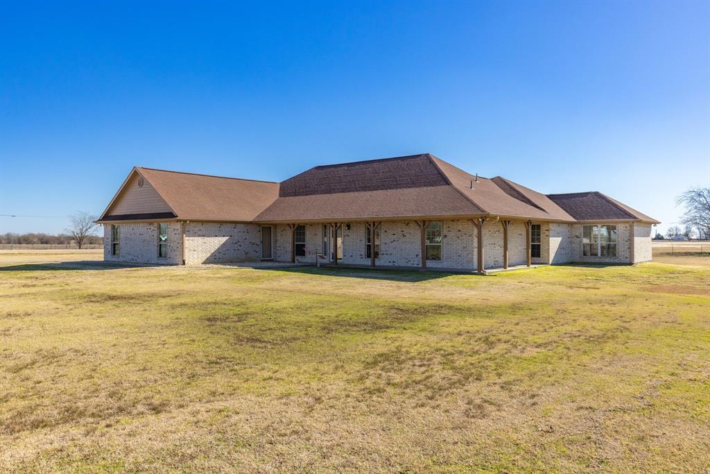 Sit on the wraparound front porch and enjoy the country views at the end of a long driveway on 15 acres! This 4 bedroom, 2.5 bath brick home, with over 3,000 square feet, comes with 2 living areas, 2 dining areas, and a game room. Step inside through a foyer hall where the formal dining is off to the left or easily use the room as office space. A wall of windows floods light into the main living room that is attached to a breakfast area with a door that gives you access to the covered back patio. The kitchen includes an island, double ovens, breakfast bar, cooktop, and walk-in pantry. A family room is located next to an extra large game room! Or you can close off the game room to make a 5th bedroom or convert the family room and game room into a mother-in-law suite. In addition, you also have three guest bedrooms which are split from the primary ensuite. Relax in the spacious primary bedroom which has an abundance of windows, a jetted soaking tub, separate shower, separate vanities, and a walk-in closet. A barn gives you extra storage for farm equipment or hay while 2 ponds provide recreational fun or water for livestock. Other items are a 2-car garage, recessed lights, and crown molding. If you need more land, additional acreage is available. With a great floor plan layout and additional land available, you can create the dream property you've always wanted!
