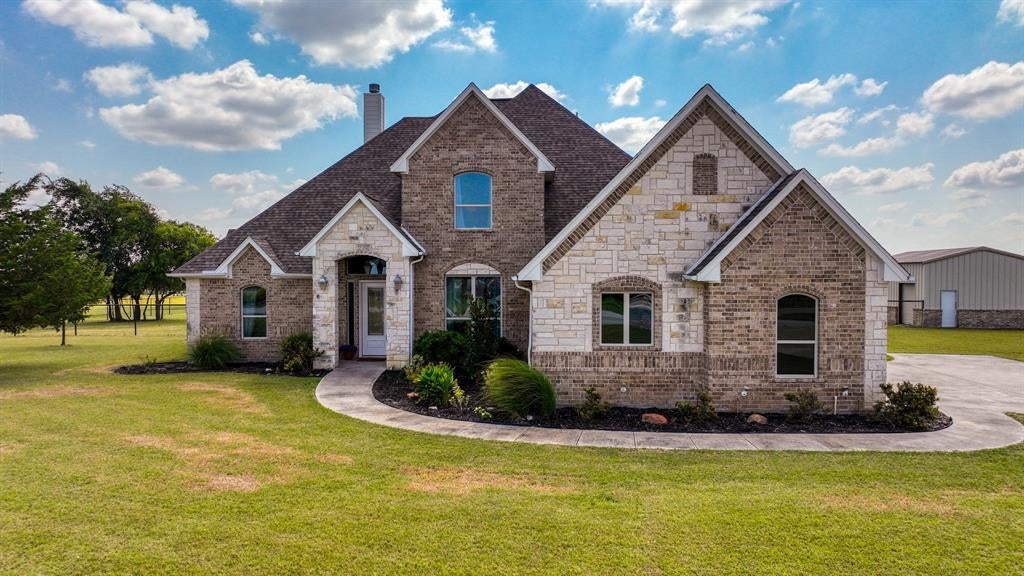 Stunning Custom 2 Story Home in Deer Ridge Estates with Pool, temperature controlled wine cellar, fiber optic internet and a durable pier reinforced slab foundation. 2.6 acres in the highly sought-after, gated community, Deer Ridge Estates in Azle, this exceptional 5-bedroom, 4-bathroom home offers luxury living with room to roam. Thoughtfully designed with high-end finishes, 10-foot ceilings downstairs, 9-foot ceilings upstairs, and 8-foot doors throughout, this home is perfect for both everyday comfort and entertaining. The chef’s kitchen boasts ceiling-height cabinets, pull-out drawers, and an oversized island that seats nine, seamlessly flowing into the open living and dining areas. Enjoy the built-in surround sound, amplifier, and security system, making this home as functional as it is beautiful. The primary suite features a luxurious walk-through dual-head shower, while additional bedrooms include a Jack-and-Jill bathroom. Upstairs, take in unmatched views of downtown Fort Worth, an ideal spot to watch fireworks! Step outside to your backyard oasis, complete with a pool that is 9' at it's deepest point, has a tanning ledge, water slide & diving board plus a kids pool attached, a wood-burning pizza oven, and outdoor speakers—perfect for summer gatherings. This home also comes with a detached workshop (roughly 20 x 40). Plus, with horse-friendly zoning (1-2 horses allowed), you get the best of both luxury and country living.