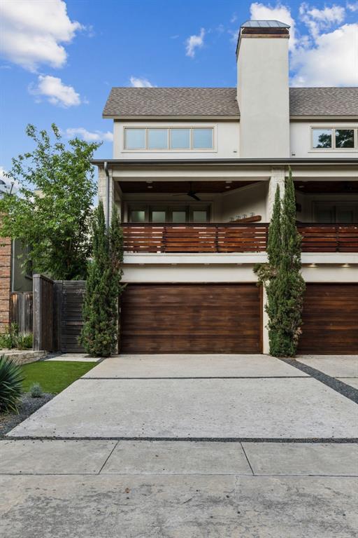 Modern home with three outdoor spaces, two-car garage and great walkability to Katy Trail, Turtle Creek Village and area restaurants. The first level includes 2 bedrooms and a den with a wet bar and wine fridge. This living space opens to true back yard with dining pavilion, fire pit, built in grill, covered TV and landscape lighting. The dramatic 2nd level living room features 20 ft. ceilings, soaring fireplace, wet bar and wine fridge. Step from living room to a large, covered terrace with fireplace and built in speakers. An additional covered balcony off of the kitchen gives private space for morning coffee. Spacious gourmet kitchen includes large Carrera island and counters. Beautiful and private primary suite features luxury bath, exceedingly large closet and study area. Additional highlights include hardwood floors, abundant natural light, multiple storage closets and an integrated AV system with built-in speakers, eight TVs, Wi-Fi system & dedicated AV closet. This is a rare and exceptional property not to be missed.