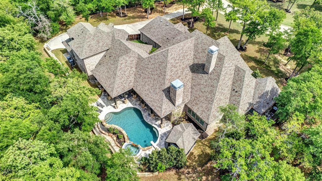** Gigantic backyard with potential to add a second dwelling for a mother-in-law suite. Look at survey!! ** Nestled on a sprawling 1.86-acre lot in the prestigious Gates at Waters Edge community (15 minutes from Frisco!), this luxurious one and a half-story home is a true sanctuary. Backing to Corps of Engineer's property, you have complete privacy in the backyard. Here, you can find peace of mind in a gated community that offers a welcoming community pool, and the nearby Dallas Corinthian Yacht Club. Every corner of this exquisitely designed custom home is a testament to elegance, with hand-scraped hardwood floors throughout. The main living area, with its grand stone gas log fireplace, vaulted beamed ceiling, and abundant natural light, seamlessly flows into a stunning gourmet kitchen, where every detail is an upgrade. Imagine the joy of cooking in a chef's kitchen equipped with Monogram GE commercial-grade appliances including a gas cooktop, dual ovens, built-in fridge, and luxurious weathered marble countertops. The primary suite offers tranquil backyard views and a spa-like bath with a free-standing tub, dual vanities, and a custom walk-in closet. Off the kitchen, a game room leads to an expansive wet bar, a media room, and first-floor guest bedroom. Upstairs, a bonus area with a kitchenette and two bedrooms, each with private baths, awaits. Two large covered patios provide exquisite private wooded views, perfect for relaxing by the outdoor fireplace or honing your barbecuing skills in the outdoor kitchen. A backyard oasis with a resort-style pool and a covered firepit area beckons. An extra-long driveway leads to a spacious 5-car garage, completing this dream home.