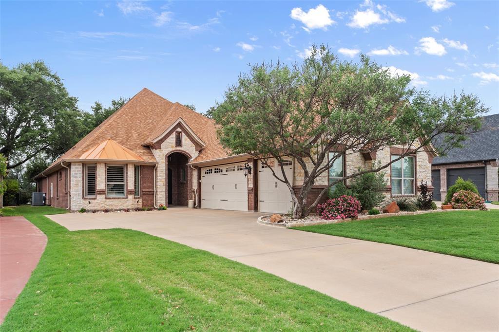 Discover an exceptional lakefront residence where refined design meets effortless waterfront living. Built in 2013 and thoughtfully updated throughout, this 4-bedroom, 3-bath home offers 3,698 sq. ft. of beautifully appointed interiors, designed for both elegant entertaining and relaxed everyday living. Step inside to find two expansive living areas, a gourmet kitchen with quartz countertops, updated lighting, and designer finishes, as well as a 3-car garage for ample storage. Subtle upgrades - such as remote-control blackout draperies in the primary suite, a gas log fireplace with blower, a whole-home water softener plus a dedicated laundry softener, and a reverse-osmosis system - enhance both comfort and convenience. Outdoors, the property is perfectly equipped for an active lake lifestyle. Two brand-new boat and jet ski lifts, a newly rebuilt seawall, fresh water at the dock for rinsing your equipment, and lake-fed irrigation for the lush lawn make waterfront living seamless. Host unforgettable gatherings at the fully equipped outdoor kitchen, or simply unwind while taking in the serene water views. Located just minutes from Granbury Regional Airport and a little over an hour from DFW International, this home offers effortless access for weekend escapes or frequent travel. Beyond your front door, Granbury welcomes you with year-round festivals, acclaimed dining, boutique shopping, live entertainment, and a rich historic charm - earning it the title of USA Today’s Best Historic Small Town in America and the official designation as Texas’s Celebration Capital. Whether you’re envisioning a seasonal retreat or a full-time sanctuary, this residence delivers a rare combination of luxury, comfort, and one of the most desirable waterfront addresses in North Texas.