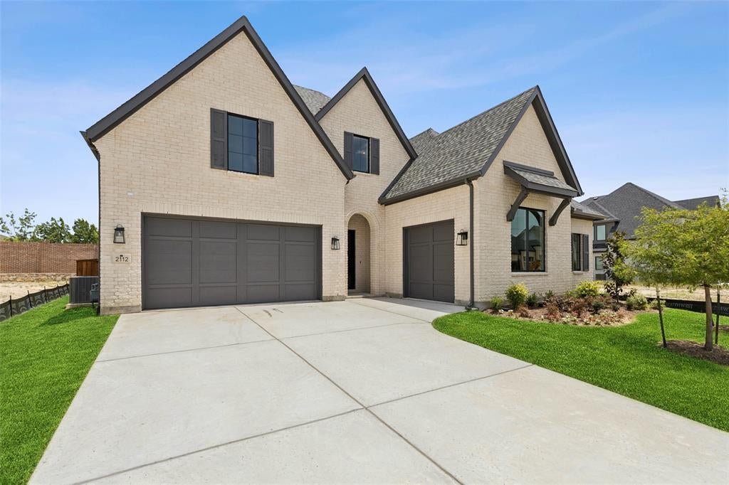SOUTHGATE HOMES BRENHAM III floor plan. Discover the Brenham III—a 5 bed, 5.5 bath showstopper that blends elegance with everyday comfort. The warm white brick exterior pairs beautifully with a Level 3 impact-rated roof for lasting protection. A split 3-car garage offers space for vehicles, a golf cart, and more. Inside, soaring ceilings and a 15’ x 8’ sliding glass door flood the family room with natural light. The open layout flows into a gourmet kitchen with quartz counters, a 36 inch 6-burner cooktop, and double ovens. The private primary suite is a true retreat featuring our Signature Bathroom—double vanity, freestanding tub, walkthrough shower with dual heads—and two oversized walk-in closets for his and hers. With upscale finishes and spacious design, the Brenham III is ready to welcome you home. MOVE IN READY NOW!
