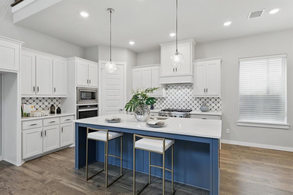Location, Location, Location! Beautiful Southgate home in The Village at Twin Creeks — shows like a model! This stunning 4-bedroom, 4-bath home blends modern style with everyday comfort. The spacious great room flows seamlessly into the gourmet chef's kitchen, which features quartz countertops, a gorgeous modern island, ceiling-height white cabinets, and a professional-style 6-burner gas range with exterior venting — perfect for those who love to cook or entertain. This kitchen is truly the heart of the home. The owner's suite is conveniently located on the first floor and offers a luxurious retreat, complete with a spa-like bathroom, dual-entry shower, free-standing soaking tub, and an expansive walk-in closet. Most bedrooms feature en-suite baths and walk-in closets, providing both privacy and convenience for everyone in the household. Upstairs, you'll find a spacious game room,3 guest bedrooms, which are ideal for relaxing or hosting guests. Built in 2021 and barely lived in, this home feels brand new. It boasts a high-end staircase, modern backsplash, tile throughout, and a low-maintenance backyard. Enjoy exceptional community amenities just steps away, including a resort-style pool, gym, and scenic walking trails — all within the highly ranked Allen ISD, with easy access to HWY 75 and 121!