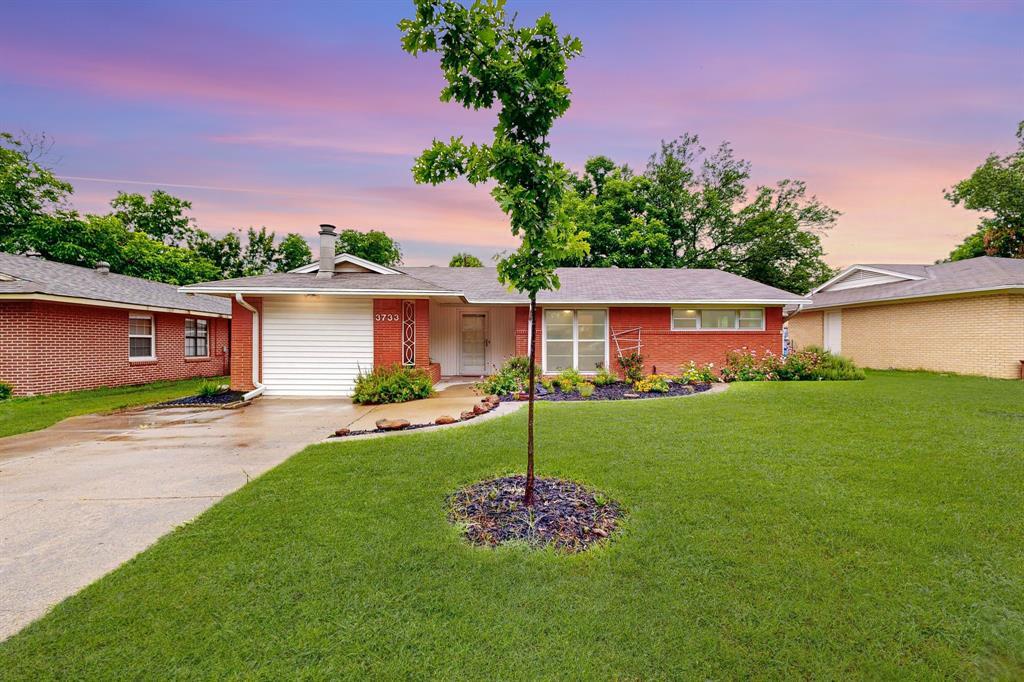 Welcome to 3733 Tam O’ Shanter Drive—a beautifully updated 3-bedroom, 1-bathroom home nestled in a quiet, established neighborhood. This thoughtfully renovated home features all-new electrical systems and stylish finishes throughout. Step inside to discover a warm and inviting interior with stunning LPV hardwood-style floors, recessed lighting, and a cozy fireplace framed by built-in bookshelves. The spacious living areas flow seamlessly, offering the perfect balance of modern comfort and mid-century charm.The chef-inspired kitchen boasts sage green cabinetry, marble-look countertops, open wood shelving, and a farmhouse sink—all accentuated by a designer tile backsplash and a movable butcher block island. The adjacent dining area provides easy access to the covered patio, ideal for entertaining or relaxing outdoors.Each bedroom offers generous natural light and closet space, while the bathroom showcases vintage tilework, brass fixtures, and a large vanity.Enjoy outdoor living in the fenced backyard with mature trees and a covered sitting area. A rear-facing garage with private alley access adds convenience and functionality. Located just minutes from White Rock Lake, Dallas Arboretum, shopping, dining, schools, and parks, this move-in ready gem is the perfect place to call home!