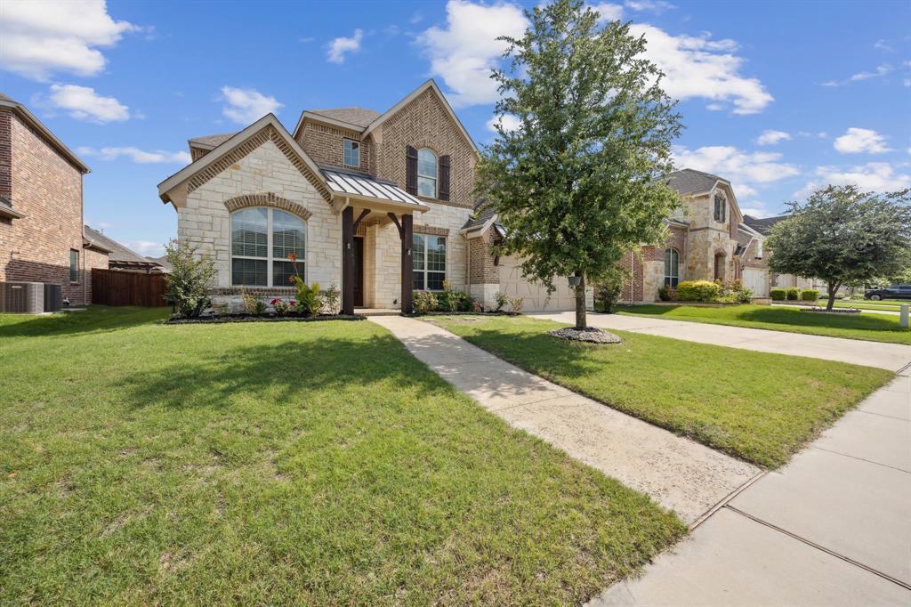 Prepare to be impressed from the moment you arrive. This stunning North Facing home boasts amazing curb appeal, showcasing an upgraded elevation with a blend of brick, stone, metal awning, and charming cedar accents. With nearly 4,000 square feet of thoughtfully designed living space, this home offers 5 spacious bedrooms, 4 full bathrooms, and an array of functional spaces including a formal dining room, pocket office, game room, and media room—ideal for today’s modern lifestyle. Primary suite and secondary bedroom with full bath conveniently located on the main level—perfect for multigenerational living or guests. The Chef’s kitchen features granite countertops, stainless steel appliances, ample cabinetry, and a large island that’s perfect for both everyday use and entertaining. The Family room offers a cozy gas fireplace, floating shelves, and large windows with views of the backyard, creating a warm and inviting atmosphere. Featuring an Open-concept layout that seamlessly connects the kitchen, breakfast nook, and family room, ideal for family gatherings and entertaining. Enjoy your own private sanctuary with a spa-inspired ensuite that includes a soaking tub, separate walk-in shower, Dual granite vanities with undermount sinks, and an Oversized walk-in closet. Other features include a 3-car tandem garage, a large utility room with sink, extra fridge space, and a built-in mud bench. Nestled in the highly sought-after Miramonte community, residents enjoy access to a resort-style pool, parks, sports fields, fishing ponds, and scenic walking & biking trails. The neighborhood feeds into exceptional Prosper schools and is just a quick stroll to the elementary school, junior high, and Rock Hill High School. The home is in a fabulous location just minutes from premier destinations like The Star, PGA Headquarters, and Universal Studios. Served by exceptional Prosper ISD schools, this home delivers the perfect blend of luxury, functionality, and an unbeatable location.