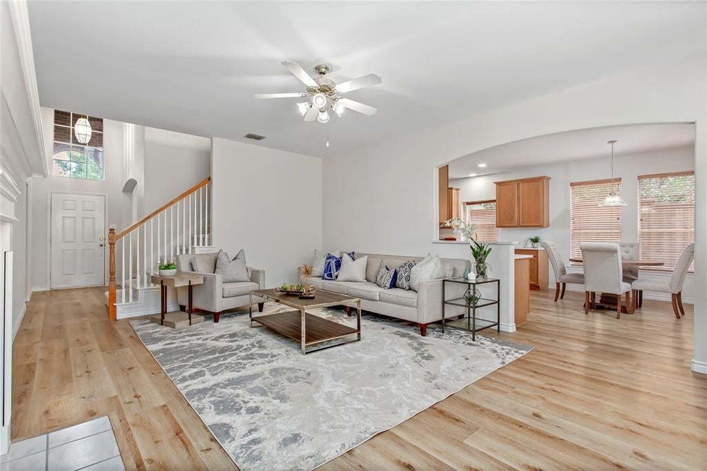 Welcome to 810 Linda Ct—beautifully remodeled and move-in ready! Nestled at the end of a quiet cul-de-sac in the heart of Allen, this 4-bedroom, 3-bath home offers thoughtful updates, smart layout, and ideal location. You'll love the brand new vinyl plank flooring, plush carpet, fresh paint, and updated lighting throughout. The kitchen features sleek quartz countertops, stainless steel appliances, and double-door access to the backyard for easy entertaining. Downstairs offers flexible living spaces with stacked formals, a cozy fireplace in the family room, and a private guest bedroom with full bath nearby. The spacious primary suite is tucked at the back with an ensuite bath, double vanities, soaking tub, separate shower, and walk-in closet. Upstairs includes two bedrooms, a full bath, and game room. Additional highlights include a new roof (Aug 2025), pre-inspected home, and plenty of natural light. Enjoy a large fenced yard, covered patio, and 2-car garage. Located in a desirable area of Allen with top-rated schools, shopping, dining, and parks nearby. Don’t miss your chance to own this updated gem