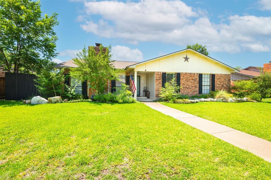 WOW! FANTASTIC LOCATION – This Home is a 10! No surface left untouched in this beautifully updated home! The seller’s eye for detail shines throughout, with thoughtful upgrades at every turn. Enjoy two spacious living areas featuring durable easy-care wood-look vinyl flooring. You will fall in love with the wet bar area featuring a beautiful travertine counter-top, backsplash and bowl sink. The kitchen boasts updated cabinetry, recessed lighting, SS appliances, and updated fixtures. Ceiling fans in bedrooms, Den and extended patio. Both bathrooms have been fully renovated with updated cabinetry, stylish finishes, and a frameless glass shower door and with body sprays in the primary bathroom shower. The home includes four generously sized bedrooms, two full baths, formal living and dining room—ideal for entertaining or family gatherings. Step outside and fall in love with this California inspired pergola covered patio, perfect for watching the sunset, enjoying your morning coffee, dining in the evening, or entertaining family and friends overlooking a stunning backyard oasis. There's also plenty of yard space for kids or pets to play. You will enjoy the rear entry two car attached garage through the 2 car carport. Welcome Home Additional highlights: Cozy fireplace in the main sunken living area. Excellent location near schools, public transportation, the George Bush Turnpike, DNT, shopping, dining, and more! Don’t miss your chance to own this meticulously maintained gem in a prime location!