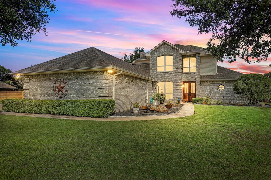 Welcome to this stunning home, situated on a spacious one-acre lot in the heart of Hudson Oaks—a unique city that does not levy property taxes, offering a financial advantage to homeowners. This beautifully maintained home offers 3 bedrooms, 2.5 bathrooms, and a thoughtfully designed layout. The primary suite is located downstairs, along with a formal living area, sitting room, and a heated and air-conditioned sunroom, which was created by enclosing the porch. This addition has been fully integrated into the home’s living space, bringing the total square footage to approximately 2,405 sq ft, although the tax records still reflect the original figure. Upstairs, you'll find two additional bedrooms connected by a Jack and Jill bathroom, perfect for family or guests. The kitchen features granite countertops, stainless steel appliances, including a built-in microwave, and ample space for cooking and entertaining. Rich wood floors, a newly replaced roof and gutters, and an oversized 3-car garage add to the home's appeal. There's also an additional brick carport for extra parking or covered storage. A standout feature of this property is the detached 718-square-foot man cave and workshop, complete with heat and air conditioning, electricity and water. The small garden shed, approximately 60–70 sq ft, also has power, and is perfect for storing tools or outdoor equipment. Outdoors, enjoy the large covered back patio, ideal for family gatherings, morning coffee, or simply soaking in the view. There’s ample space for a garden, greenhouse, pool, or a play area for kids and pets. Plus, an underground dog fence has already been installed and will remain with the property. The city water supply comes from city-owned wells. Located just off I-20, this home provides quick access to downtown Fort Worth while offering the peace, privacy, and benefits of suburban country living. Schedule your private showing today and discover all the features this one-of-a-kind property has to offer!