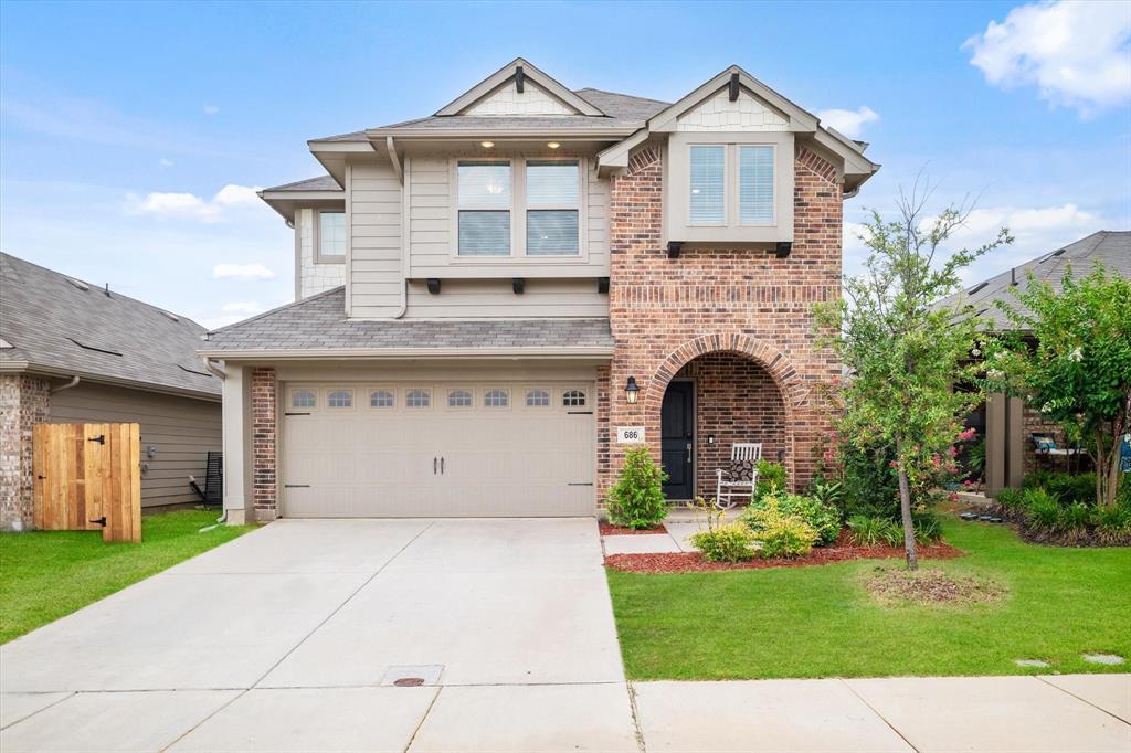 Welcome to Aubrey Creek Estates! Enjoy living on a quiet cul-de-sac in this four bedroom, two and a half bathroom, 2,150 square foot home! The Master Bedroom is located on the first floor with an ensuite bathroom and a huge closet with direct access to the laundry room. The additional bedrooms are located on the second floor with a bonus room loft space. The kitchen is thoughtfully planned for cooking and entertaining with a large center island, lots of counter and cabinet space and a walk in pantry. The kitchen is open to the dining area and a large family room with a wood burning fireplace. The outdoor patio is oversized with a Pergola and electric fireplace. There is a dedicated EV charger located in the garage that also accommodates a generator. The Clubhouse and Community pool are just a block away. Enjoy Lake Ray Roberts State Parks for boating, beaches, hiking, equestrian and bike trails and swimming. Approximately 45 minutes to the Metroplex for an easy commute.