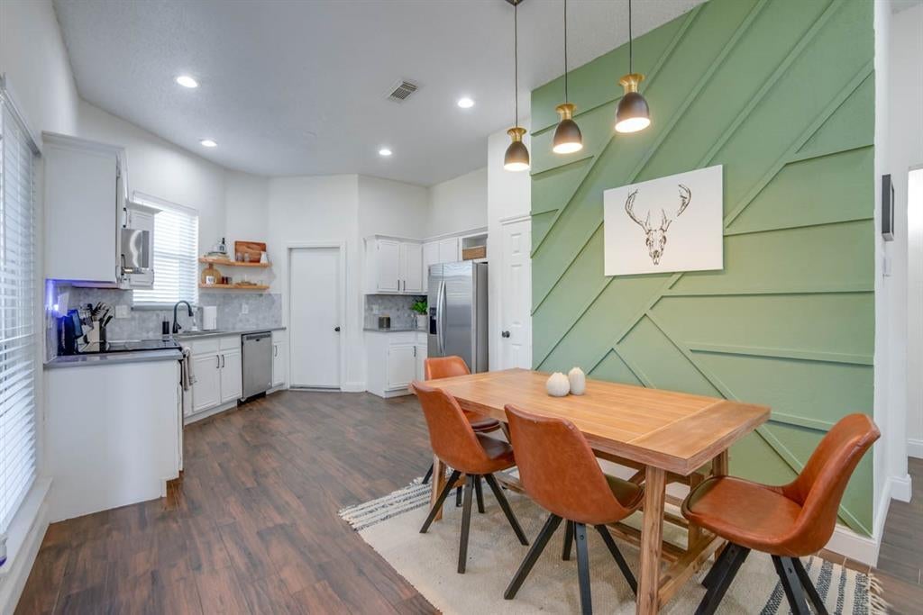 Welcome to this beautifully updated single-story home offering 3 bedrooms, 2 bathrooms, and a spacious 2-car garage. Located just minutes from the lake, this home combines comfort, style, and functionality. Inside, you’ll find a light-filled open floor plan with newer windows, neutral tones, and no carpet throughout—perfect for easy living and a clean aesthetic. The tastefully updated kitchen features painted cabinets, quartz countertops, newer appliances, and flows effortlessly into the main living space. A stunning fireplace adds warmth and charm to the living area, making it the perfect spot to unwind or gather with friends. The split-bedroom layout provides added privacy, while the beautifully updated bathrooms and fixtures elevate the overall feel. Step outside to enjoy a spacious backyard ideal for entertaining, with year-round lawn care included. Additional perks: solar panels for utility savings and a refrigerator included. This home has everything you need—style, space, and convenience—plus a location close to the water.