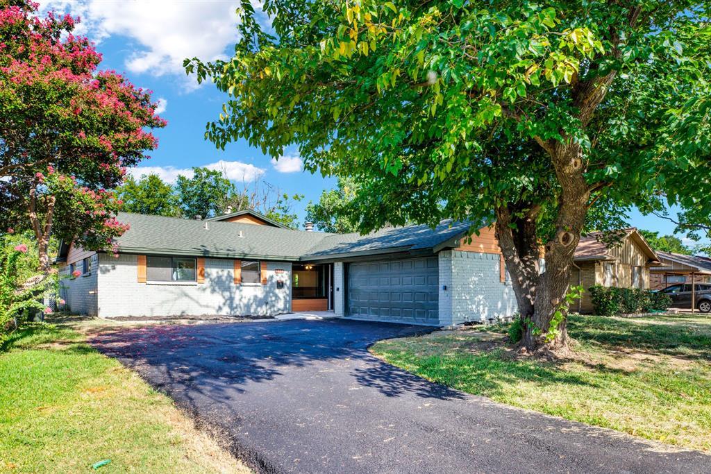 Beautifully updated 3-bedroom, 3-bath home in Carrollton- move-in ready and packed with modern features! This home stands out with fresh black trim, wood accents, shutters, and a newly redone driveway for excellent curb appeal. Step inside to an open-concept living area with wood look ceramic tile flooring, a sleek linear fireplace, and plenty of natural light. Enjoy a modern kitchen with white cabinetry, decorative stained glass, granite countertops, mosaic tile backsplash, galley layout with tile floors, and a breakfast area—perfect for casual meals. The dining area, featuring large windows and a stylish chandelier, opens seamlessly to the living space for entertaining. The primary suite offers a barn door walk-in closet and a spa-like attached bathroom with wood-look tile, weathered gray floating vanities, and brushed nickel fixtures. All bedrooms feature new carpet, and both additional bathrooms are freshly updated with modern finishes. Benefit from a flexible, move-in-ready floorplan, a spacious backyard for your personal touch, and a newly finished garage with sealed painted flooring. Located in the sought-after Carrollton-Farmers Branch ISD, close to parks, disc golf, the library, downtown Carrollton, Addison dining, and with easy access to I-35 and I-635. Don’t miss this modern, low-maintenance home in a prime location!