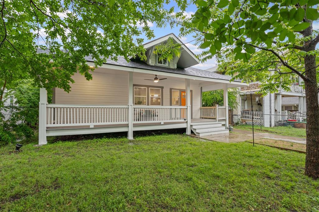 **HUGE $20,000 Price Reduction! Situated in the vibrant Bishop Arts District, this beautifully updated Craftsman-style home blends charm with modern comfort. From the walk up the front steps and onto an expansive front porch, homeowners are greeted with warm, original hardwood floors and an abundance of light gleaming through a myriad of windows. Remodeled and redesigned with elegance, comfort and entertaining in mind, each room flows seamlessly into the next. While maintaining the home's open flow, the main living space allows for a sense of privacy and warmth created by a modern fireplace. The original hardwood floors are showcased throughout the home, with the exception of contemporary and decorative tile in the wet areas. An updated kitchen embodies white cabinetry with soft-close doors and drawers, adorned with brushed gold door pulls and sink faucet. The open kitchen flows into a spacious dining and unique siting area, just off two of the three spacious, fully updated bedrooms and two full baths, each highlighting frameless shower doors. The primary bath includes double vanities and a substantially sizable shower. Adjoining the front family room is the third bedroom, or an ideal home office. A huge backyard with obstructive vegetation and tall fencing ensure privacy. Recent upgrades include: foundation work with a lifetime-transferrable warranty, remodeled front porch, fresh paint inside and out, plumbing fixtures and electrical, energy efficient windows, water heater upgraded to tankless, AC, stainless-steel appliances, custom kitchen with Carrera countertops and new cabinets. Both bathrooms have been updated. The primary bath includes a two-head rainfall shower. St. Augustine grass installed in the front yard. The expansive Lake Cliff Park, merely blocks away, encompasses a large pond, walking trails, lush landscape and more. Enjoy a plethora of nearby shopping and restaurants. Washer, dryer & refrigerator convey.