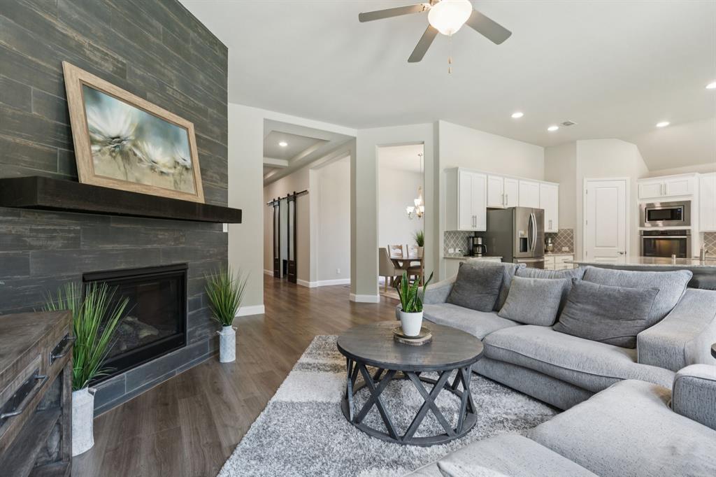 This spacious 5 bedroom, 4 bathroom home seamlessly blends style, comfort, and functionality, offering the perfect layout for modern living. With 4 bedrooms and 3 baths conveniently located downstairs, the home provides both privacy and accessibility for family and guests. Step inside and be welcomed by soaring tray ceilings and a bright, open-concept floor plan designed for everyday living and effortless entertaining. At the heart of the home, the chef’s kitchen boasts a massive island, elegant finishes, and abundant storage—ideal for gatherings big or small. The kitchen flows seamlessly into the breakfast area and living room, while the formal dining room offers an inviting space for special occasions. Working from home is easy in the dedicated office, beautifully accented with modern sliding barn doors. A versatile flex room near two bedrooms and a full bath makes the perfect kids’ zone, guest retreat, or in-law suite. Upstairs, a striking wood and wrought iron staircase leads to a private retreat featuring a spacious game room, fifth bedroom, and full bath—a great space for teens, guests, or family fun. Enjoy outdoor living on the large patio overlooking the peaceful backyard, perfect for evening relaxation or weekend barbecues. Located in Denton ISD and zoned to the highly acclaimed Guyer High School, this home offers not only a prime location but also premium upgrades and custom features you won’t find in a standard builder package.