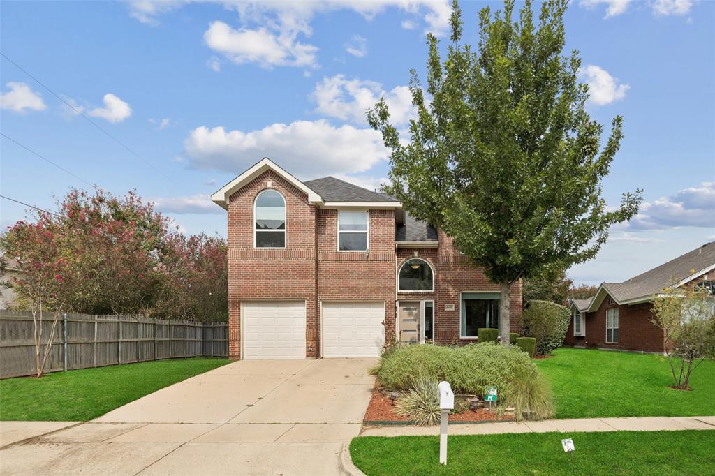 Modern updates and timeless comfort come together in this beautifully appointed home. The heart of the home is the stunning kitchen, thoughtfully designed with sleek grey gloss cabinets, striking white quartz countertops, a waterfall island with built-in drawer microwave, and a modern stainless steel range wall vent. Designer window treatments complement the home’s décor and color scheme, while remote-controlled shades on large windows add convenience and elegance. The inviting family room offers the perfect gathering space, featuring a cozy fireplace and abundant natural light. Show-stopping bathrooms that boasts a glass tile accent wall with a cascading waterfall feature in the secondary full bath and a floating vanity in the half bath that exude modern style. Upstairs, the serene primary bedroom provides a private retreat with an ensuite bath, while the spacious secondary bedrooms share a well-appointed bath, offering comfort and flexibility for guests. Enjoy a Texas-sized backyard framed by mature trees, complete with a patio that’s ideal for relaxing or entertaining. Every space has been thoughtfully updated to blend modern style with welcoming warmth—making this home a true gem you won’t want to miss! Great location with many parks, shopping, and dining options nearby. 3D tour available online.