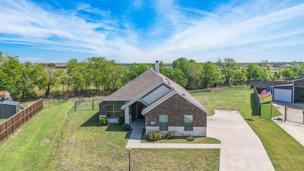 Discover this spacious 4-bedroom, 2-bath gem, perfectly situated on a sprawling half-acre lot. As you step inside, you'll be greeted by brand-new luxury vinyl plank flooring that flows seamlessly through the main living areas, creating a modern and cohesive feel. The heart of the home is the inviting living room, featuring a beautiful stone fireplace, perfect for cozy evenings. The kitchen features new stainless steel appliances and elegant granite countertops. Relax and unwind in the luxurious primary suite, complete with brand-new carpeting and his and hers walk-in closets for ample storage. The private en-suite bathroom is a true sanctuary, offering a dual-sink vanity, a separate shower, and a relaxing soaking tub. The additional three bedrooms also feature new carpeting and convenient walk-in closets. This home also includes a dedicated office, providing a quiet space for work or study. Outside, the large backyard offers plenty of room to play and entertain, with undeveloped acreage behind the home for added privacy. You'll also find a 3-car garage and a dedicated space to build a custom shop, making this the perfect place to grow and create the lifestyle you've always wanted.