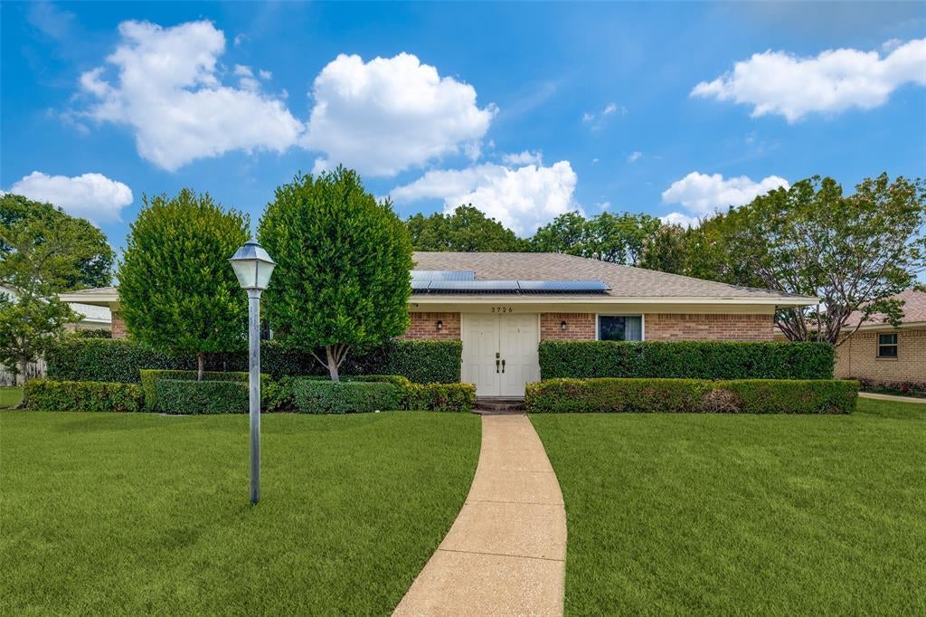 This Wonderful house has three bedrooms plus an office and an enclosed back patio. Beautiful porcelain tile floors that look like wood floors. The kitchen is enhanced with granite countertops, great looking cabinets, microwave, dual ovens and handsome porcelain tile flooring that looks like wood floors. Spacious den features a nice fireplace and terrific looking porcelain tile flooring that looks like wood flooring. Living room and dining room both have terrific looking porcelain tile flooring that look like wood flooring. The windows have been replaced with dual pane glass for energy efficiency. The office has an abundance of built-in shelves, there is an updated patio door that has dual pane glass for energy efficiency, the patio door opens to the backyard. Over-sized garage for extra storage. Solar panels are owned by the seller. Sprinkler system. Updated breaker box. The seller says that the house is larger than the Dallas County Tax records.