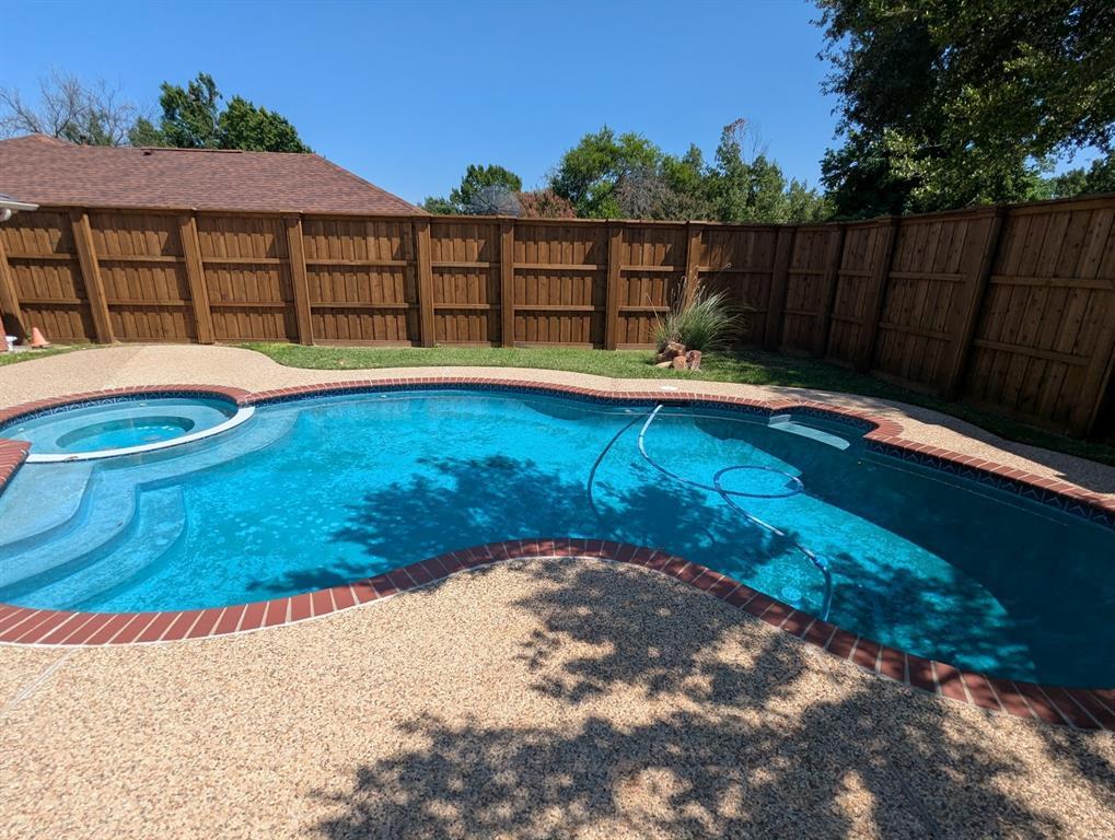 No HOA Wonderfully updated custom in North Mesquite. Beautiful kitchen, formal dining, and Living room with pretty fireplace a perfect place to relax when it's cold outside. This home also offers a backyard tropical paradise with pool and hot tub. Add great schools, EVP floors, fresh paint, master bath with separate shower, this home is perfect for your family. Beautifully updated Ranch Style Home in Mesquite! INCLUDING: New EVP flooring, fresh paint, new fixtures, granite countertops. Great location close to schools, parks and shopping, walking distance to Mesquite Heritage Trail and local Parks, Beasley Elementary and Kimbrough Middle School. North facing home offers open floor plan and is beautifully updated. Sidewalk can be repaired through the city of Mesquite at half price, about $700