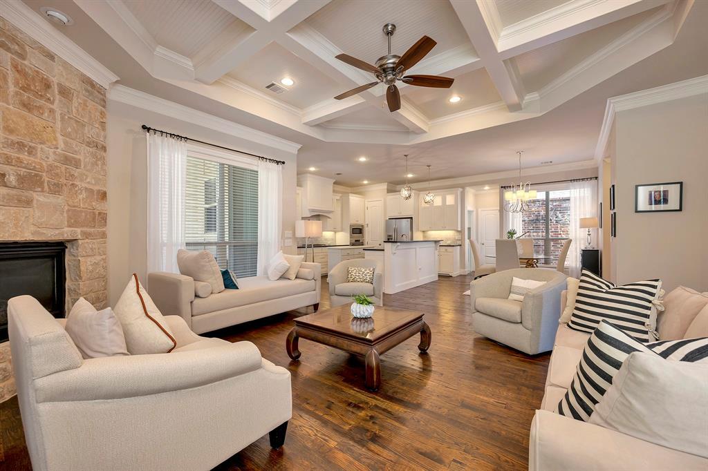 A MUST SEE! STUNNING 1 Story GARY PANNO Custom LUXURY Villa Home in sought after Gated Community with ALL the HIGH END Decorator Finishes and UPGRADES GALORE you could Possibly Want! Immaculate, Open, Light and Bright, Spacious Floor Plan with No DETAIL LEFT OUT! Features include Extensive Crown Molding, High Vaulted Ceilings with Beadboard 11 FT. Coffered & Barrell Treatments, Solid Wood Doors, Hand Scraped Wood Floors & Custom Cabinetry throughout, Granite & Marble Countertops, SS Appliances, GAS Cooktop & Fireplace, & SO MUCH MORE! EXTRA Custom Built-Ins are Natural Stone Designer Kitchen Island, Breakfast Bar with Wainscoting Treatment, Built in Desk Area, Butler's Pantry, & Laundry Room with Granite Countertops, and All 3 Full Bathrooms have Glass Enclosure Shower Areas! HUGE Master Suite with Sitting Area and Window Seat, Large Walk-in Closet & Luxury Spa Bathroom Set Up with Jetted Tub and Separate Shower. Entire Home features Wood Shutter, Blinds & Window Treatments with Designer Lighting and Ceiling Fans throughout. Rest of 1st floor offers Split bedroom plan - Guest Suite with Ensuite FULL Bathroom and Front Bedroom or Office Space with EXTRA Full Bathroom. Front Covered Porch Entrance with 2 Patio Areas off each Side of House - One with Extended Patio Area for Entertaining including Gas Hookup and other is Enclosed that would be Great for your Outdoor Living Garden or Zen Space! Beautifully Landscaped Private Yard includes Sprinkler System, 2 Car Extended Garage Space, & HOA handles Lawn Care completing this Home. The Community Pond and Canal next to Walking Trails are Stocked for Catch-and-Release Fishing. Centrally Located in the Heart of Keller within Walking Distance to Shopping, Dining, Entertainment, Bear Creek Park, and Keller Pointe. Refrigerator Conveys with Property with Acceptable Offer. See MLS Supplement Documents for additional Info~LIST OF UPGRADES & UPDATES, POINTS OF INTEREST NEAR HOME, KELLER PARKS AND TRAILS MAP.