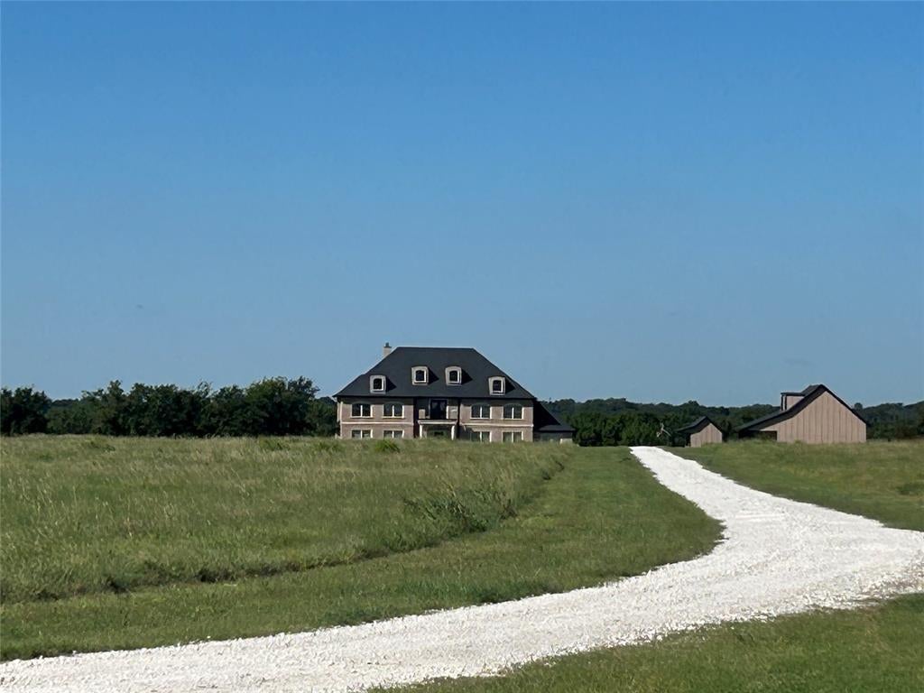 Executive home on 20 acres located in Grandview ISD, easy access to the metroplex and airports. Hay is cut for ag exemption back of the property includes an incredible view down to the creek with walking paths and sitting area. Home features a well thought out floor plan, expansive foyer leads to office with built ins and large closet, open kitchen, dining and living area features 21' ceiling, XL utility area with drop zone off garage. Primary bedroom with floor to ceiling windows with a view of back porch and those beautiful TX sunsets. Ensuite bathroom, soaking tub, and large walk thru shower with shower heads at each end, double sinks on large vanity and walk in closet with center island drawers. Upstairs could be used for multigenerational living, 2 bedrooms with ensuite baths, 3rd bedroom and hall bath and don't forget the media living room! Hall closet downstairs is safe room. Buyer and buyers agent to verify all measurements.