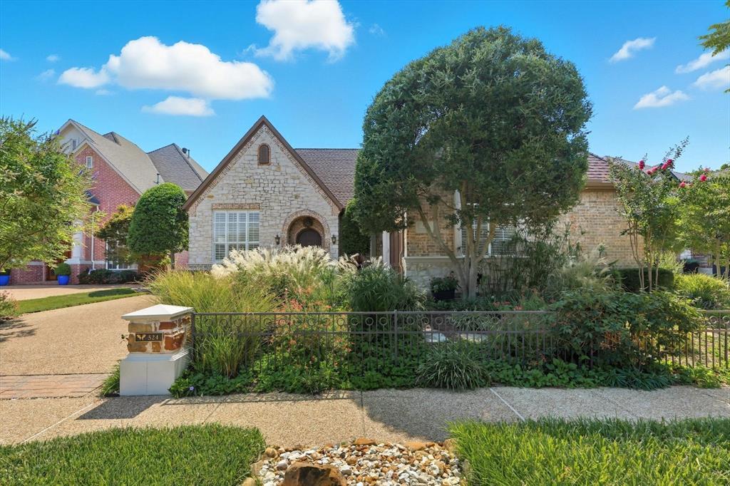 Immaculately maintained one-story home with fabulous curb appeal in the highly desirable Crescent Royale addition in Timarron. Hardwood floors throughout living areas, extra tall ceilings, and large living areas. Three bedrooms, three baths, two living areas and two dining areas. One bedroom currently being used as office. Lots of storage throughout. Spacious primary suite with huge bathroom, separate vanities, and large dual closets. Enjoy relaxing evenings in the stunning outdoor space with living area that includes summer kitchen with grill and burners, pergola, and soothing sounds of the rock waterfall and pond. Backyard features lush landscaping and easy maintenance and backs to green space for privacy. HOA maintains front yard. Roof replaced 8-25; water heaters replaced 2024, new fireplace 8-25.