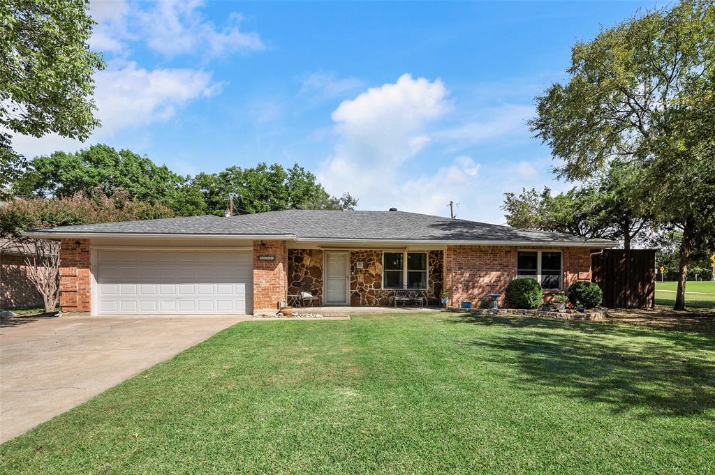 Welcome to this warm and inviting 4-bedroom, 2-bath home located in the charming Pecan Acres and zoned to highly-rated Lewisville ISD. This single-story gem features a layout filled with natural light, thanks to numerous windows that brighten every room. The spacious living room boasts hardwood floors and a decorative fireplace, creating a cozy space with a statement that overlooks the backyard. The generously sized primary bedroom offers a peaceful retreat with an added sitting area and an ensuite bathroom with a separate shower. The kitchen is well-equipped with stainless steel appliances, ample cabinet storage, and plenty of counter space, perfect for both daily living and entertaining. A dedicated dining area with built-in cabinets flows seamlessly to the backyard, where you'll find a large grassy area, garden beds, a cozy fire pit seating area, and an above-ground pool for those warm Texas days. Added storage in the hall keeps everything organized and within reach. With its unique combination of comfort, functionality, and outdoor charm, this home offers a lifestyle that’s both relaxed and ready for memorable moments.