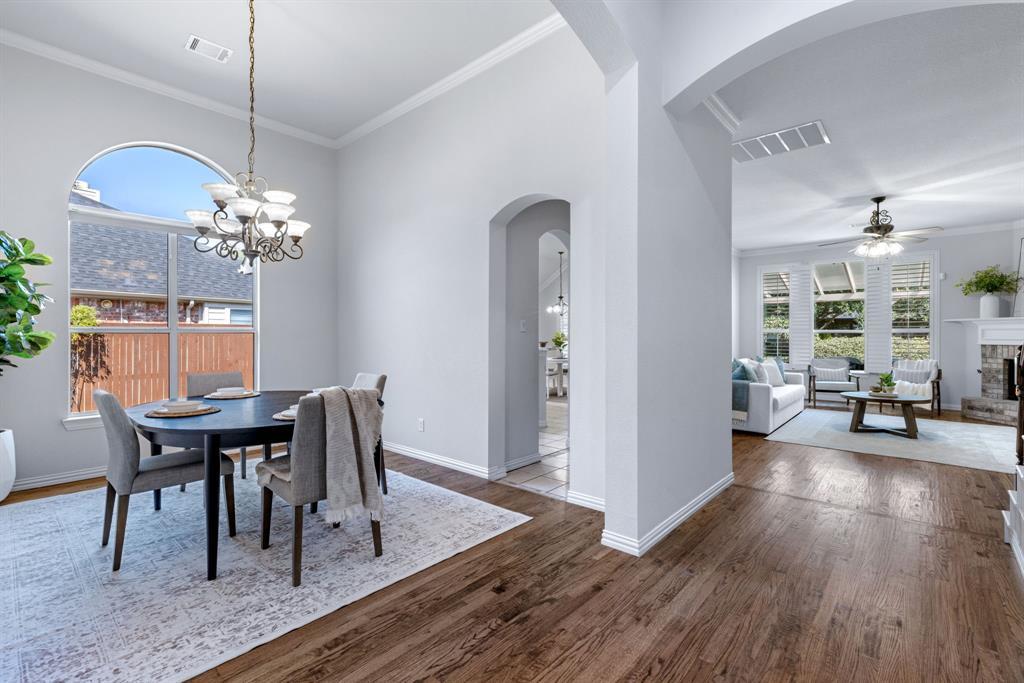 Beautiful West Frisco Home – full of charm & unique features! Unlike any other, this one-owner home has been meticulously cared for and is located in one of West Frisco’s premier neighborhoods. Thoughtfully designed, it offers timeless style, versatile living spaces, and countless upgrades. The spacious layout includes a large primary suite plus two additional bedrooms and two full baths on the main level. A formal dining room, private home office with French doors, butler’s pantry, and a chef’s kitchen that opens to the living room with a cozy gas fireplace and built-ins make this home perfect for both everyday living and entertaining. The kitchen features updated granite countertops, a convection microwave, cooktop, pantry, breakfast bar, and a sunny breakfast nook with access to the outdoor living area. Upstairs, a unique bonus room with a large walk-in closet offers endless possibilities—bedroom, game room, media room, home gym, or playroom. The closet is fully plumbed for a future bathroom, and the reinforced flooring was designed to hold the weight of a pool table. Enjoy the private backyard retreat with a covered extended patio featuring stamped concrete, a water mister for cooling on hot summer nights, and a gas line for grilling—all overlooking a serene walking trail and mature trees. The front and back yards are fully landscaped for easy upkeep. Additional highlights include: remodeled primary bathroom, gorgeous hardwood floors, plantation shutters & crown molding, and electric door locks. Oversized 2-car garage equipped with storage cabinets, utility sink, additional overhead lighting, and an additional 5 ft of depth—perfect for a full-sized truck, and a fully floored attic for abundant storage. Bright, open, and full of character, this home is truly a rare find in Frisco! Zoned for top rated schools with the elementary and middle schools just around the corner. Walking distance to The Trials golf clubhouse, community pool, tennis courts and parks!