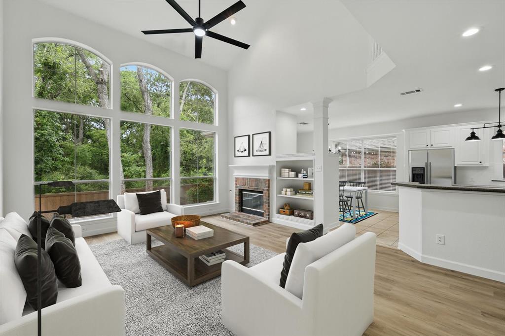 Beautifully updated and move-in ready, this 4-bedroom, 3-bath home is located in the sought-after Stewart Peninsula community—just steps from Lake Lewisville. With fresh paint, luxury vinyl plank flooring, new carpet, updated lighting, and ceiling fans throughout, the open layout creates a bright and welcoming atmosphere. The spacious kitchen features all-new appliances, granite countertops, abundant cabinetry, a center island, and a breakfast bar that flows seamlessly into the cozy living room with a gas fireplace and built-in bookcase—perfect for entertaining or family gatherings. A formal dining room and sunny breakfast area add flexibility for both casual and formal meals. The private primary suite offers a walk-in closet and en-suite bath with dual sinks, garden tub, and walk-in shower—your personal retreat. A second downstairs bedroom with a full bath provides ideal space for guests or multi-generational living. Upstairs, enjoy a large game room, media room, and two additional bedrooms—perfect for kids, home office, or fitness space. Outdoors, the peaceful backyard backs to Lake Lewisville—an exceptional and rare feature! Residents of Stewart Peninsula enjoy outstanding amenities, including two community pools, golf, playgrounds, walking trails, and a private boat ramp. Conveniently located near Grandscape, shopping, dining, and entertainment are just minutes away. This home combines location, lifestyle, and timeless design—schedule your private showing today!