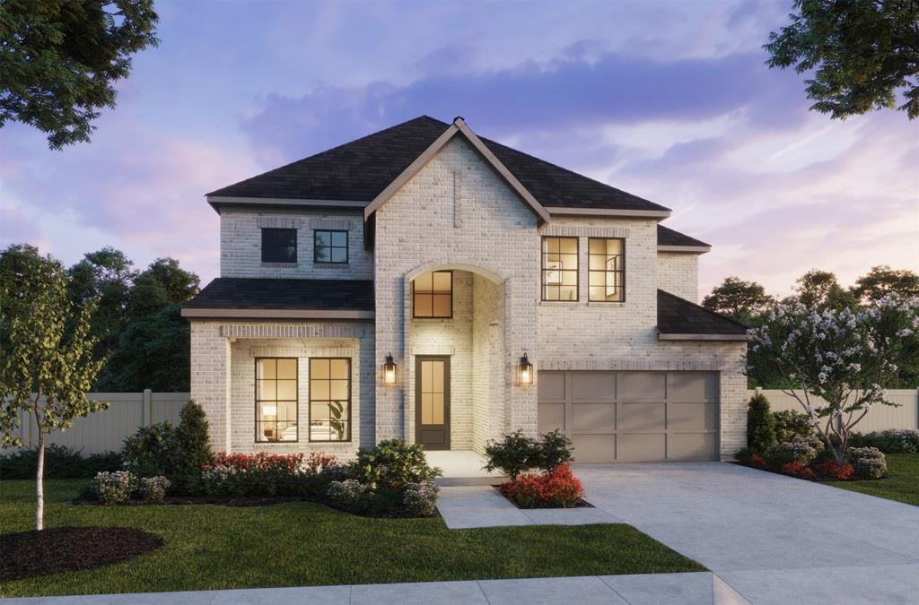 NORMANDY HOMES VERSAILLES floor plan. Experience luxury living in this impeccably designed 5 bed, 5.5 bath home with approximately 3,595 sq ft of elegant space. Soaring ceilings in the entry and family room create a grand welcome. The chef’s kitchen features stainless steel appliances, custom cabinetry, and a large island—perfect for entertaining. The first floor offers 2 bedrooms, 2 and a half bathrooms plus a private office. Upstairs includes a media room, game room, and 2 additional bedrooms and 2 bathrooms. Enjoy cozy fall evenings and unwind on the relaxing front porch. Offering plenty of storage plus a spacious 2-car garage, this home perfectly blends comfort, privacy, and style.